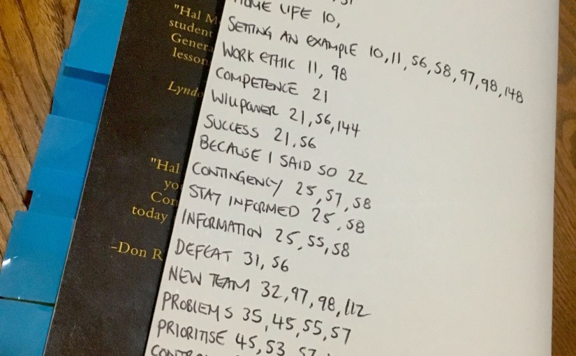 With all the books I review on the blog, I’ll be posting photos of my index, as well as providing a copy of the spreadsheet version, which will accumulate indexes as they arise. Check out my recent review of Hal Moore: On Leadership. Winning when out gunned and out manned.